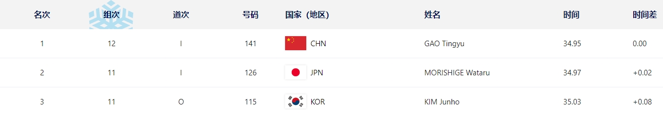 高亭宇最终成绩是34秒95,而他保持的亚洲纪录/赛会纪录是34秒69。