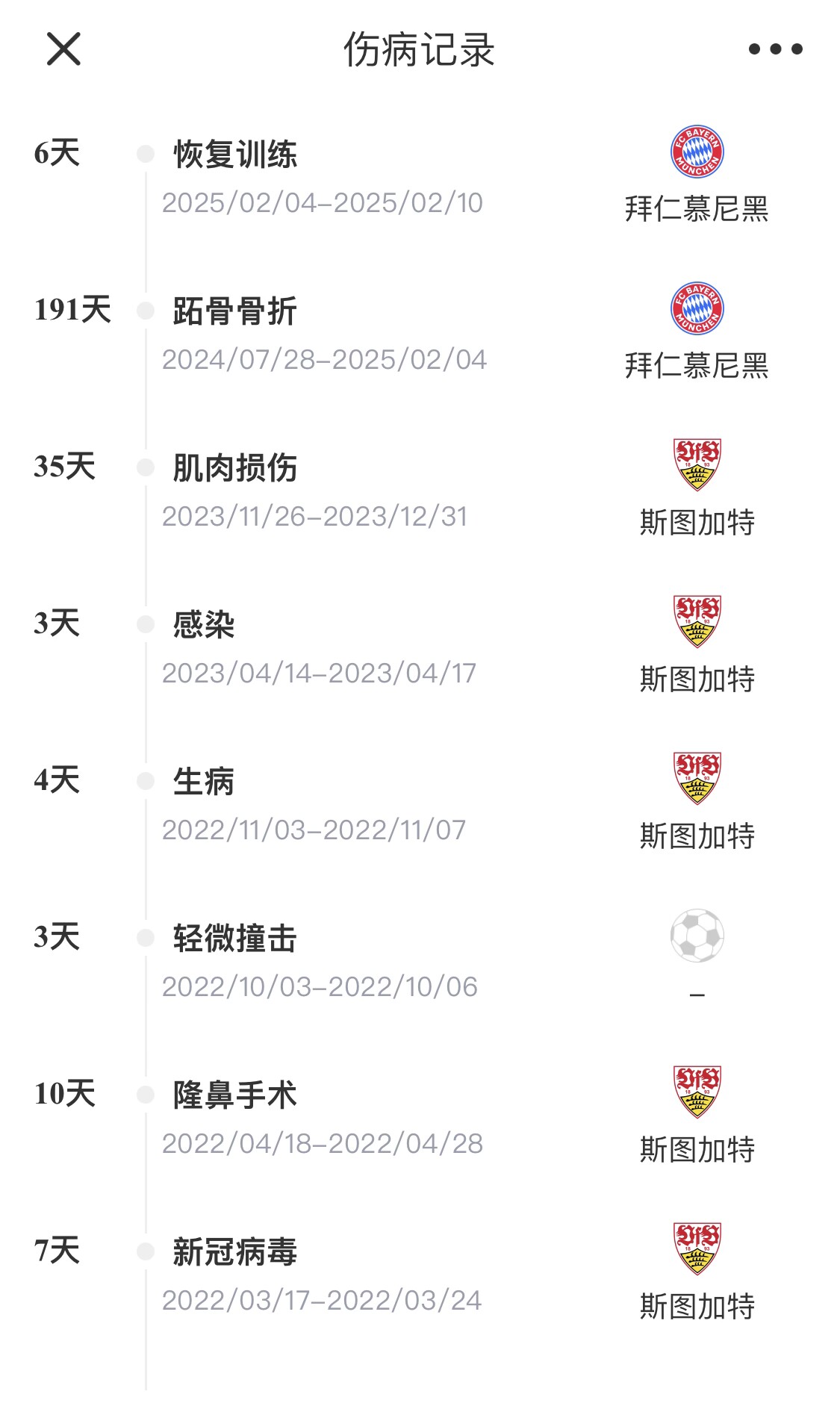 2024年夏窗,拜仁激活3000万欧的解约金条款,从斯图加特签下25岁的日本后卫伊藤洋辉。7月28日伊藤洋辉友谊赛拜仁首秀便遭遇跖骨骨折,进行了两次手术,一直伤缺到今年2月才迎来拜仁正式比赛首秀。在复出仅出战8场比赛后,伊藤洋辉同一位置又遭遇了骨折伤情。